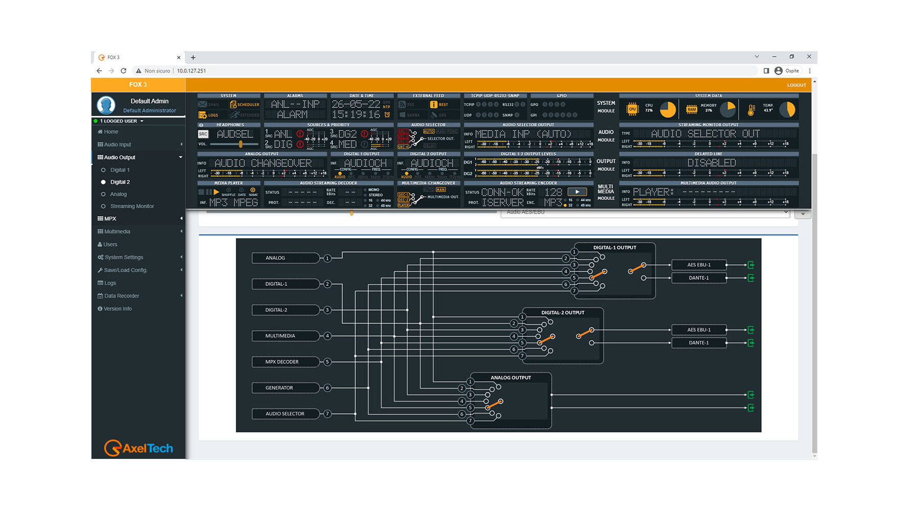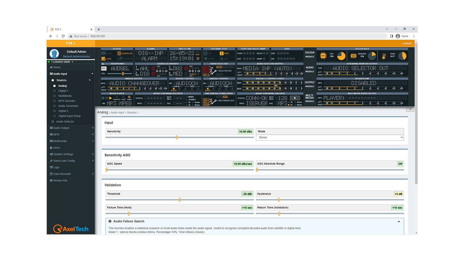 FOX 3 is a fully digital audio modular platform which combines Switcher & Changeover, Silence Detector, format conversion, FM tuner.