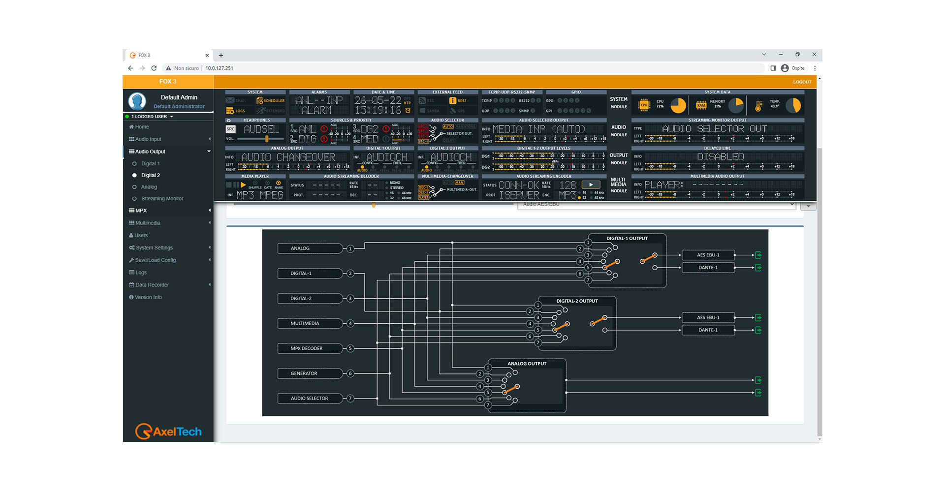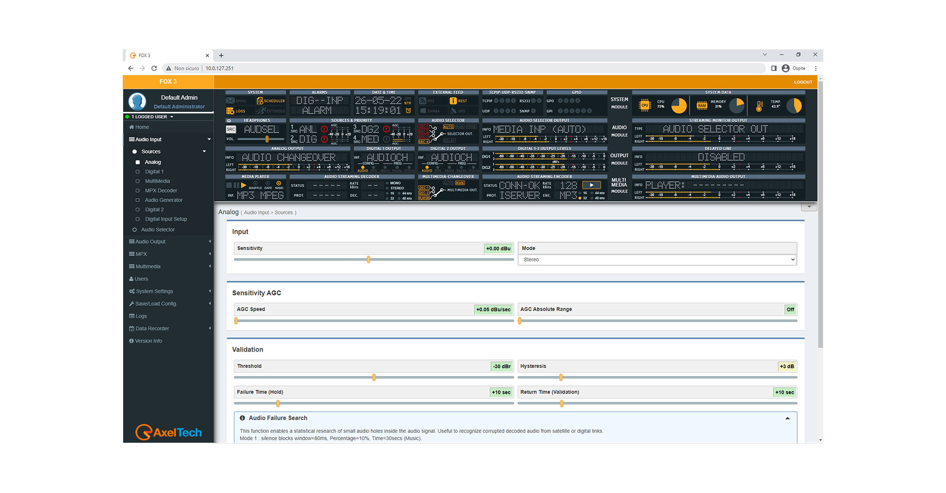 FOX 3 is a fully digital audio modular platform which combines Switcher & Changeover, Silence Detector, format conversion, FM tuner.