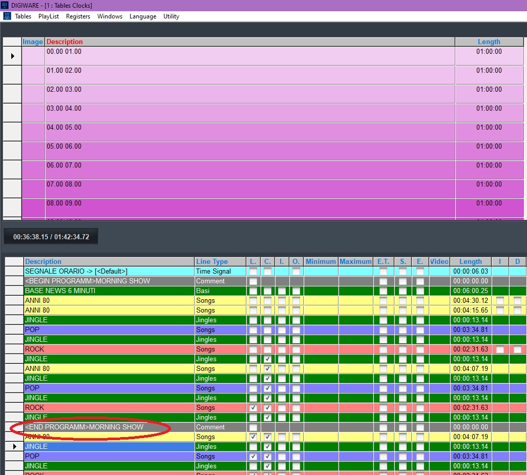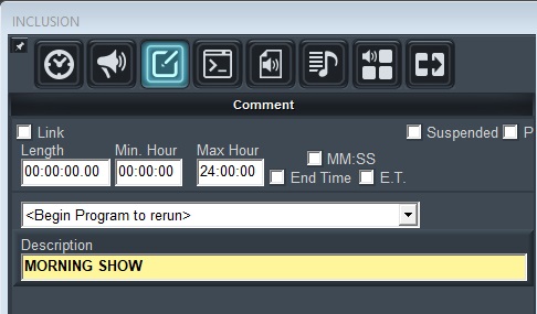 PLAYLIST CREATIONWhen you create the playlist of the program to be rerun, you will find the two comment lines that mark the beginning and end of the program.
