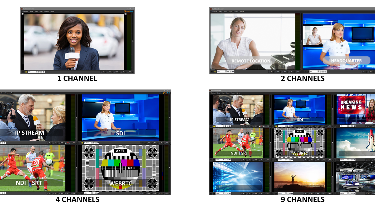 It is available in different versions, with 1, 2, 4 and 9 channels, and can be delivered as a software or a turnkey 1 RU appliance. The user interface is configurable and can be used for multi view monitoring and configuration purposes.