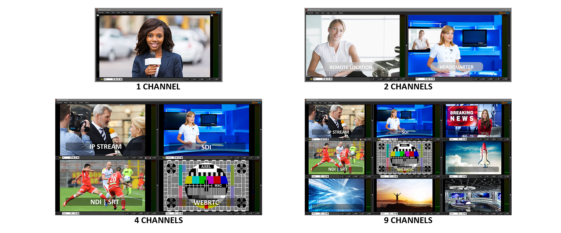 It is available in different versions, with 1, 2, 4 and 9 channels, and can be delivered as a software or a turnkey 1 RU appliance. The user interface is configurable and can be used for multi view monitoring and configuration purposes.