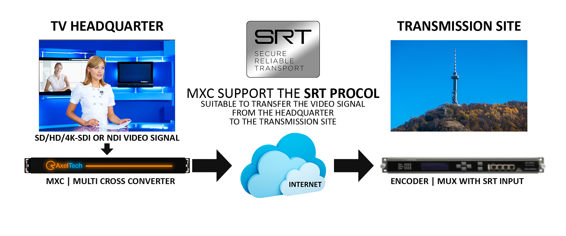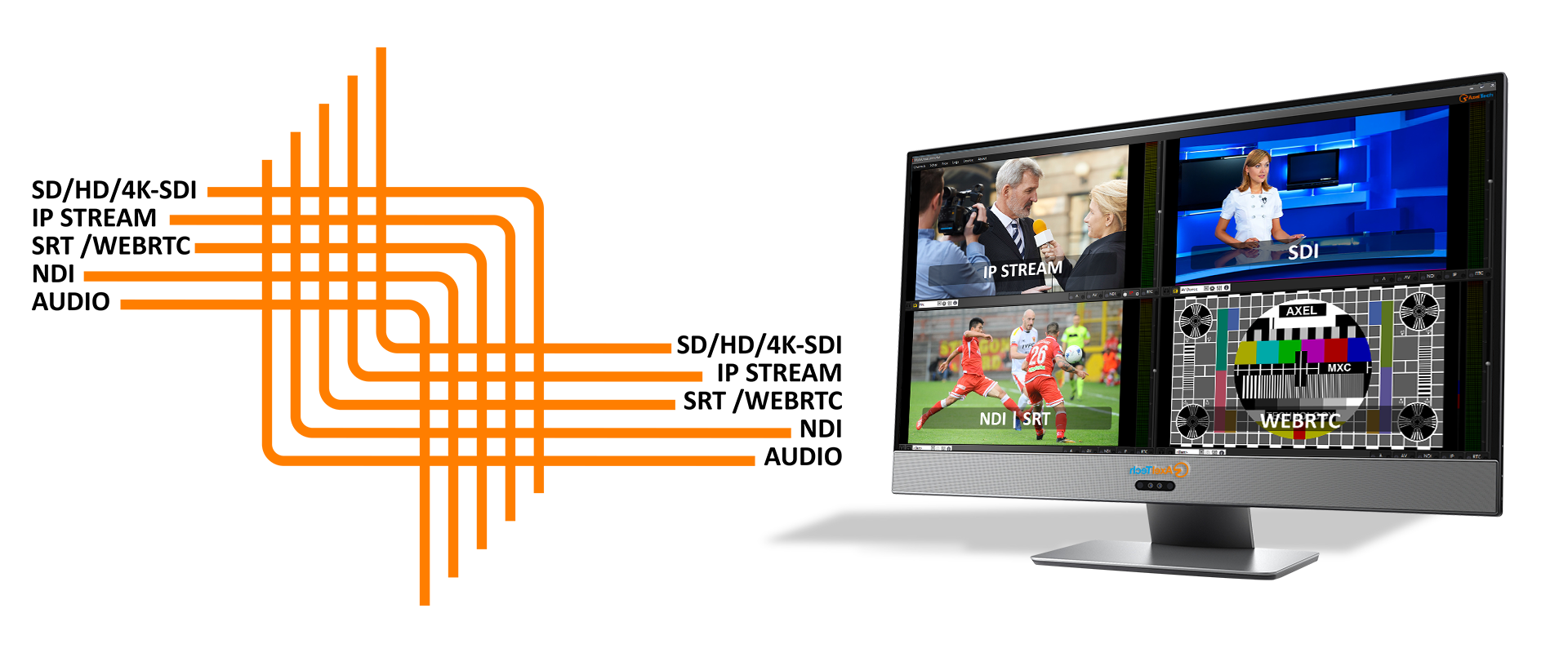 MXC (Multi Cross Converter) is a software based multichannel video Encoder/Decoder suitable to be used for Contribution & Distribution purposes, able to convert various video inputs (such as SDI, NDI, SMPTE 2110, WebRTC, SRT, and IP) to various outputs.