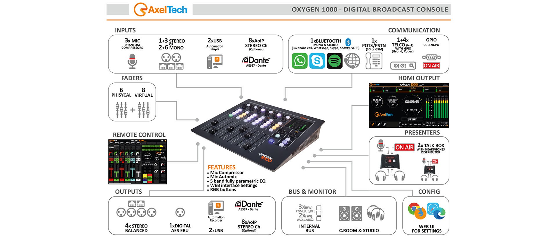 Oxygen 1000 DSP based audio processing delivers high-end quality and guarantees latest features and flexibility.