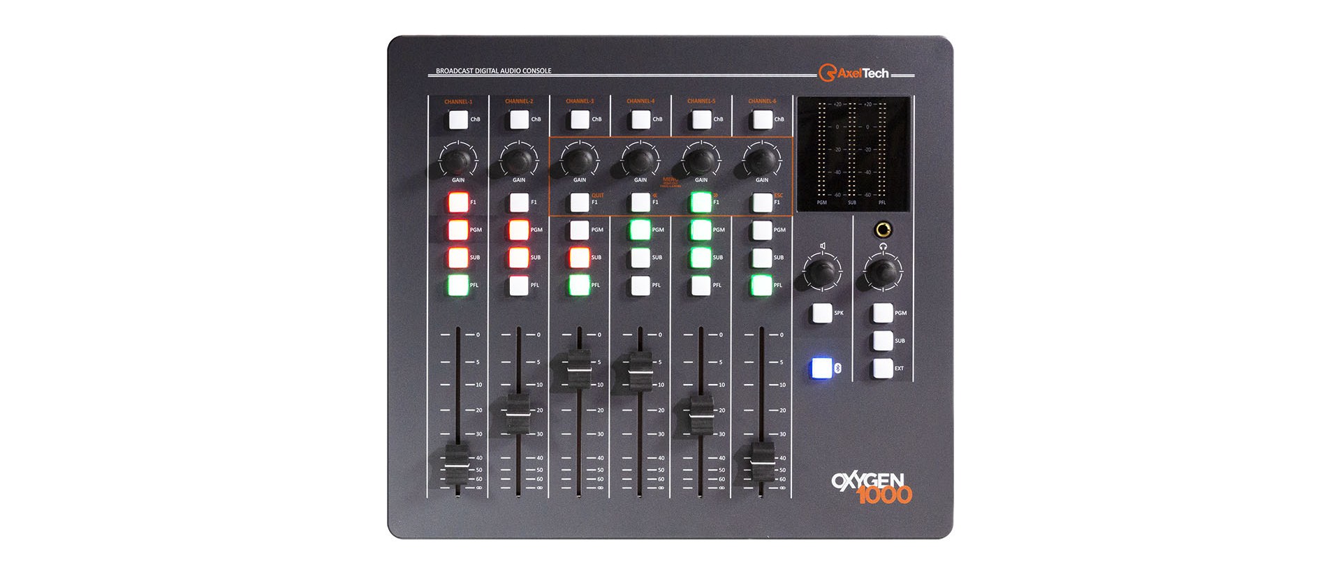Oxygen 1000 is a fully Digital Broadcast Console designed for On Air and Production in any Radio Station: a compact 6 faders unit, 3 microphone inputs with Automix, with a powerful internal audio routing and a wide range of controls and I/O in a rugged and classy steel chassis.