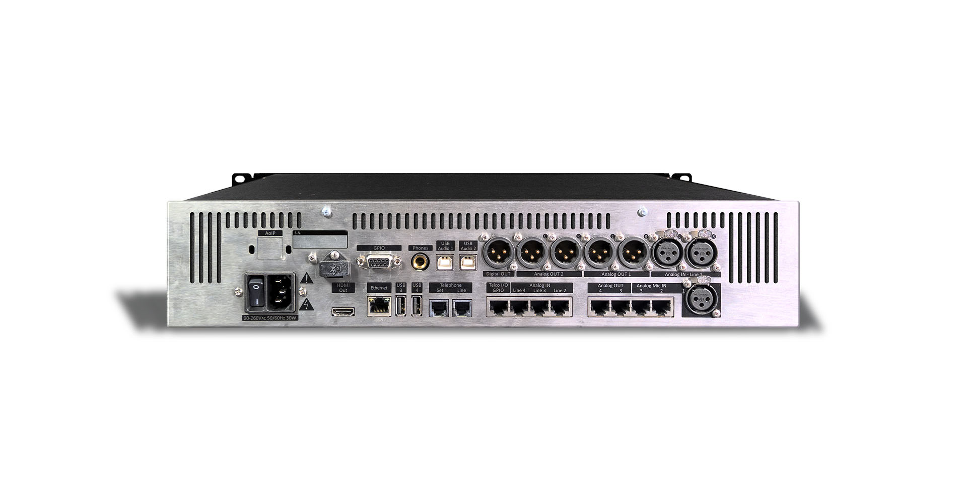 - Telco: 1 in/out N-1 to connect external telephone hybrid with control via TLC/GPIO