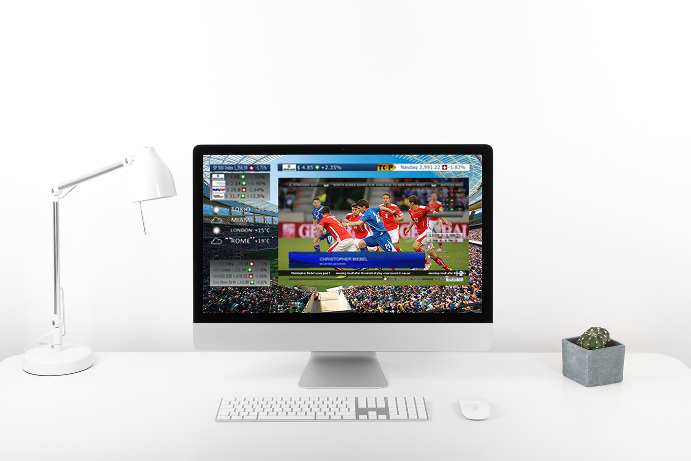 All graphic elements can be inserted on three different layers: on the background, inside the PiP (following 2D/3D zoom & compress FX), and on top of them for channel branding. Ultra Cross Converter allows you to have a LIVE approach or SCHEDULED approach for Graphics Airing.