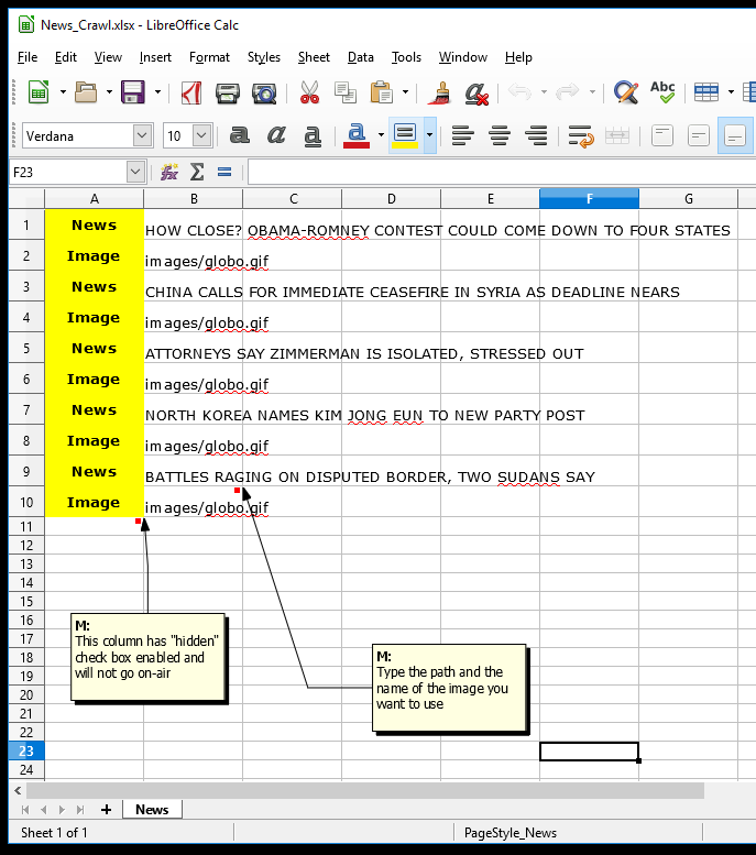 DLG plus imports data automatically from TXT, CSV, RSS feeds and especially Excel files, so whenever data is updated, it goes straight on air. DLG Plus respects fonts, colors and alignment specified in the Excel files selecting from which sheet and cells to acquire the data. Hidden or unprintable cells will not air, very handy fro comments and remarks to the user inputting the data. DLG plus also respects the formulas and database connections specified in the Excel files, allowing to create custom applications with macros and VBA scripting.