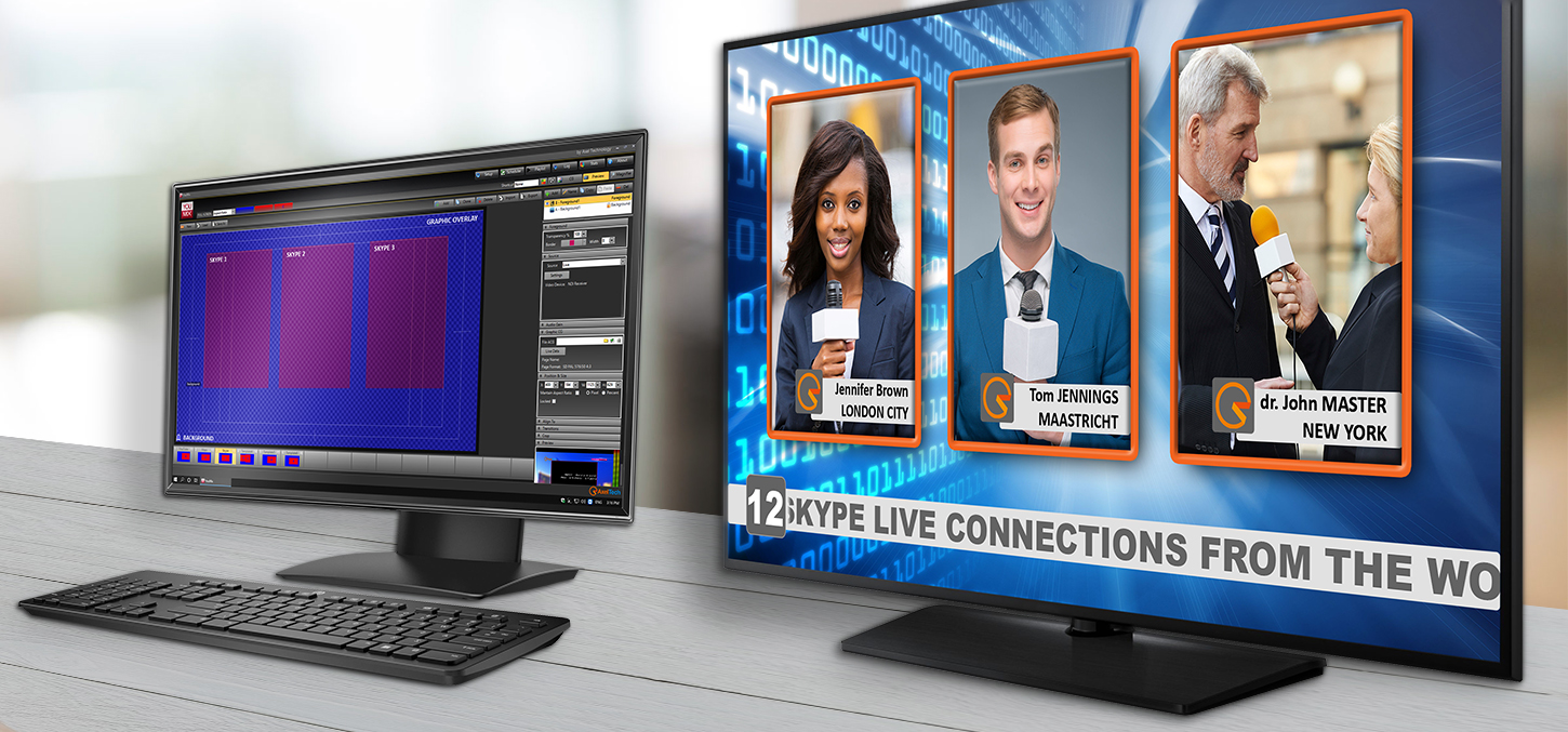 CG Live is a software based solution for real time character generation. CG Live features animated backgrounds, movements and effects on text, images, clocks, animated logos, dates, crawl and news tickers. CG Live works via both SDI video boards and via NDI.