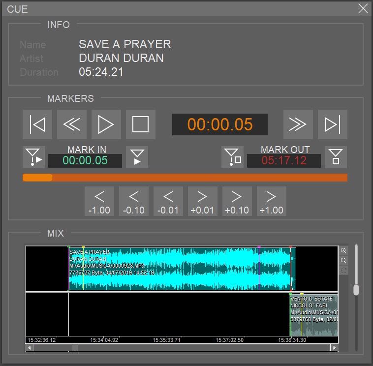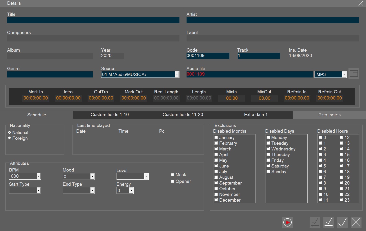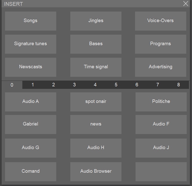 - Crossfade parameters specifically set for each single audio resource as songs, IDs, sweepers and pre-recorded programs.