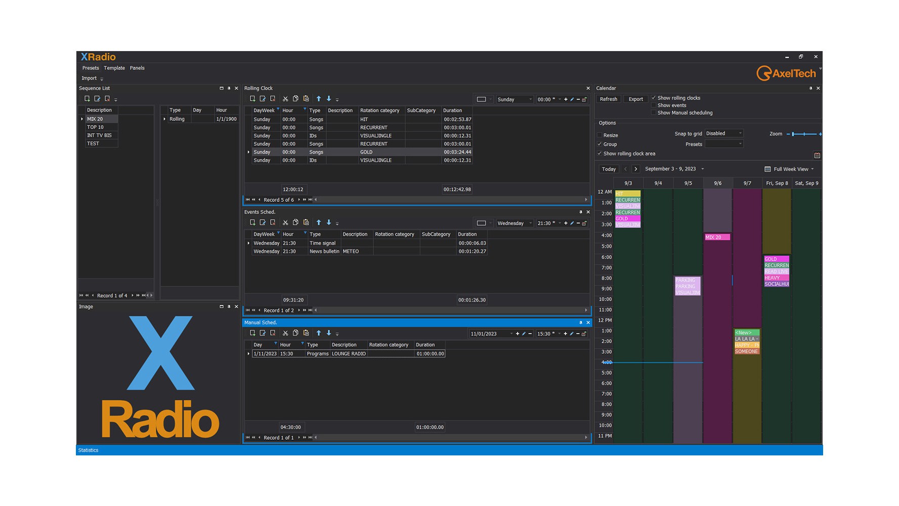 - Complete workflow management tools: scheduling, trimming, graphic composer