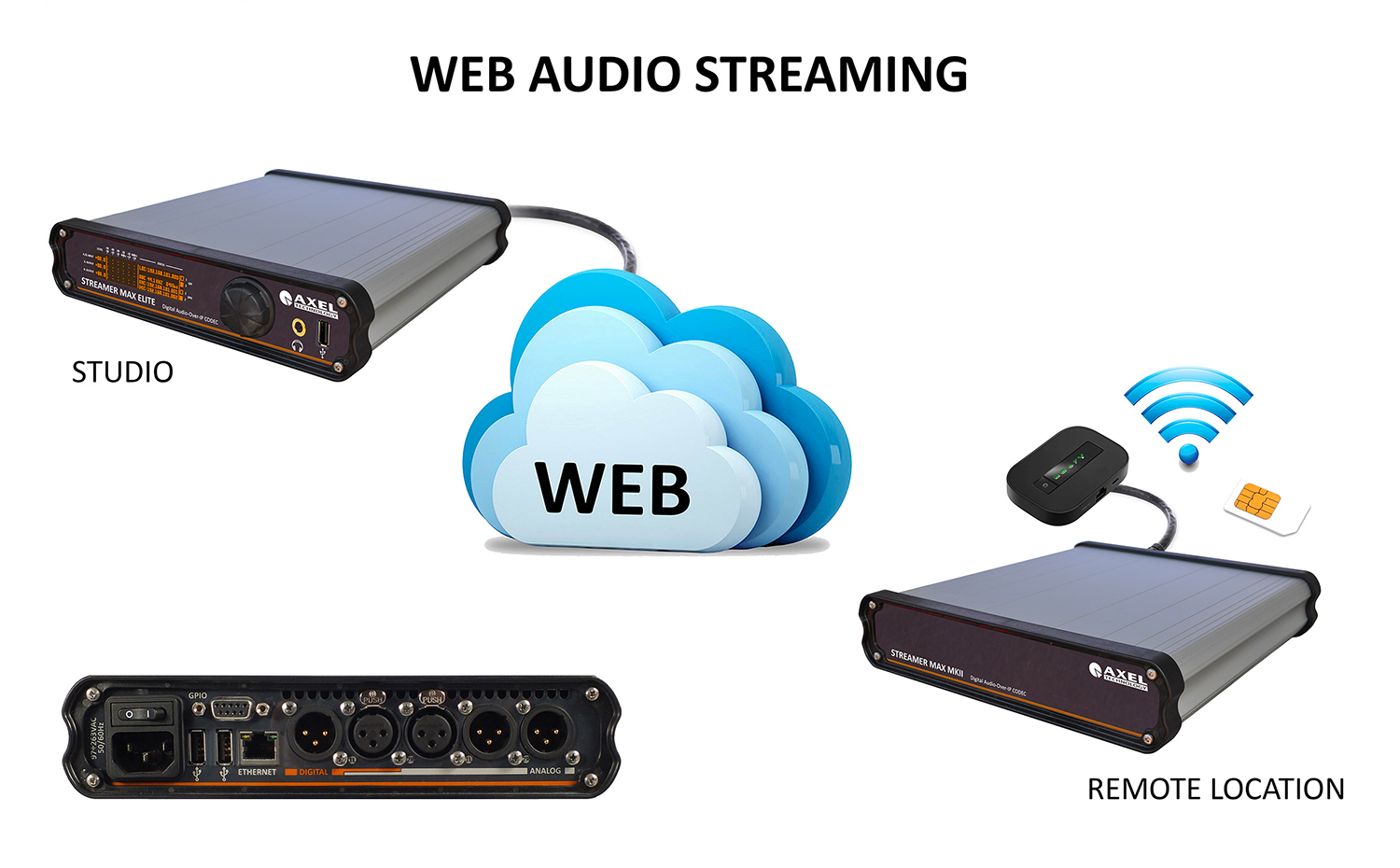 STREAMER MAX is an audio encoder/decoder over IP (bidirectional/full duplex).It is compatible with most of worldwide standards and features. Its open architecture allows to support future formats and customizations. It combines application versatility (Studio, STL, Portable) with easiness of use.STREAMER MAX has both analogue and digital inputs and outputs in order to allow maximum flexibility of installation and connectivity.Specifically designed for broadcast applications, STREAMER MAX is a high quality and high performance device with professional features such as data tunneling for RS-232 serial port and GPIO management.STREAMER MAX is also suitable for consumer applications, from audio stream in point-to-point environments to audio distribution for public addressing. The heavy-duty aluminium body, the battery box and the universal power supply allow deplyment in any kind of environment.