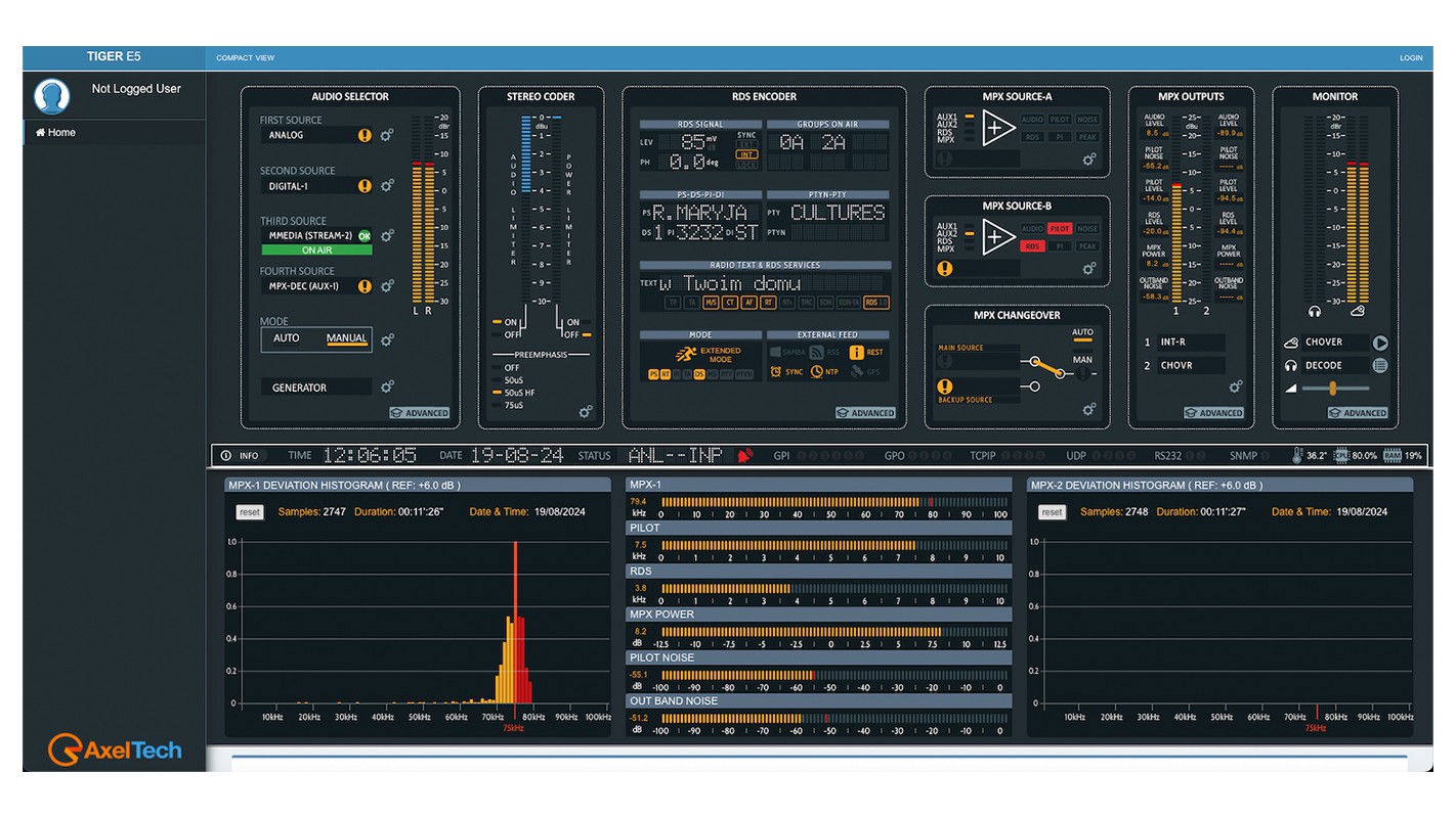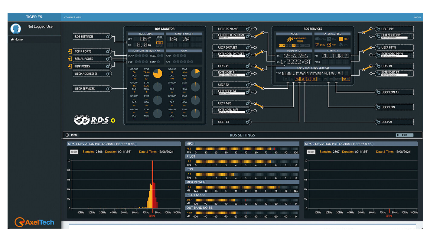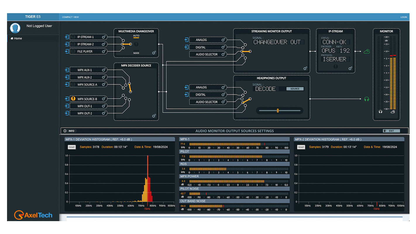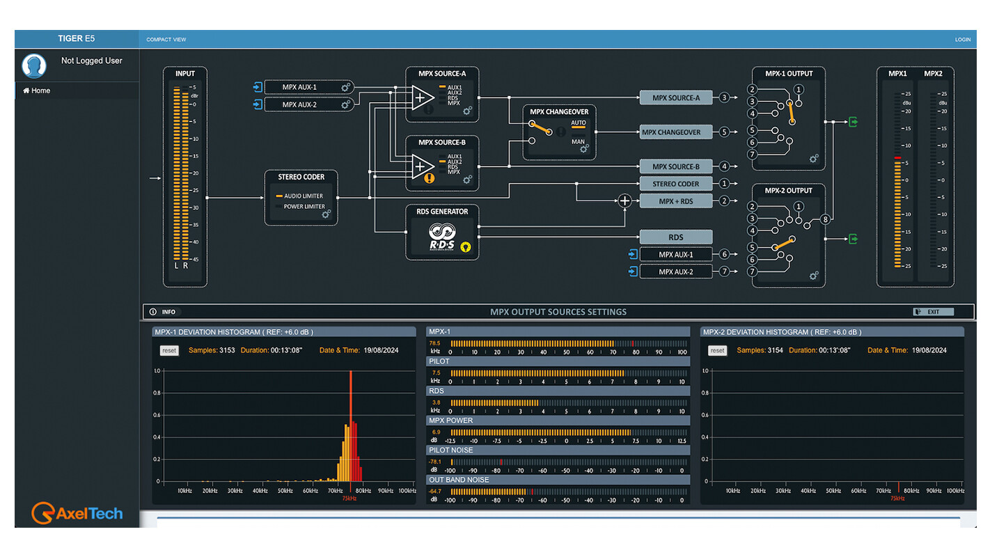 The MicroMPX lovers can now take advantage of all the additional options allowed by AxelTech Tiger E3/E5, like four channel changeover, backup SD card audio player, RDS post-processing, MPX, and RDS decoding for monitoring, and many more, which can satisfy any need at the transmitting site.
