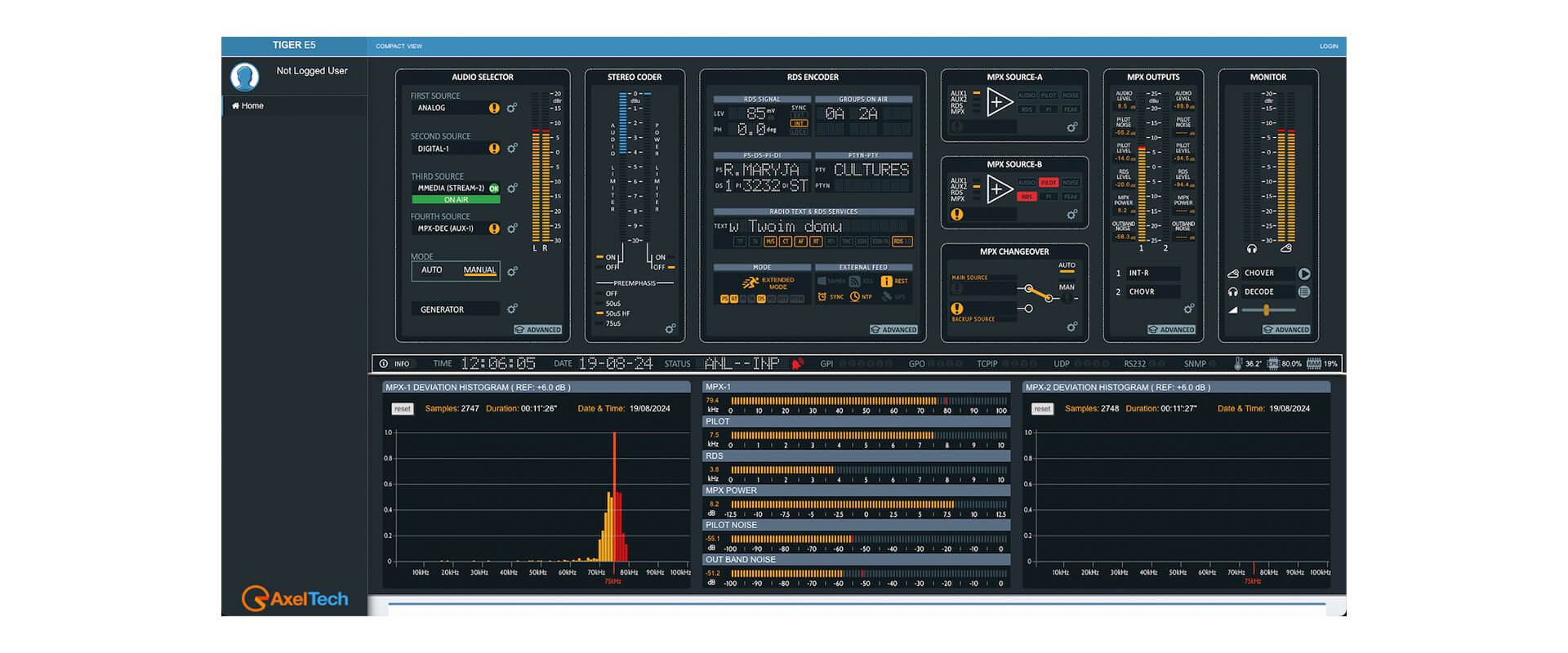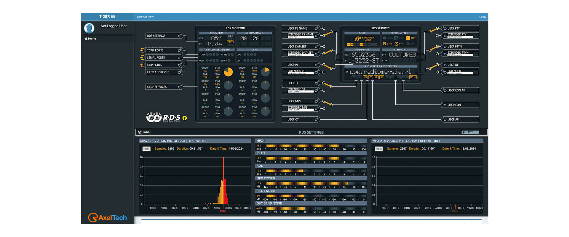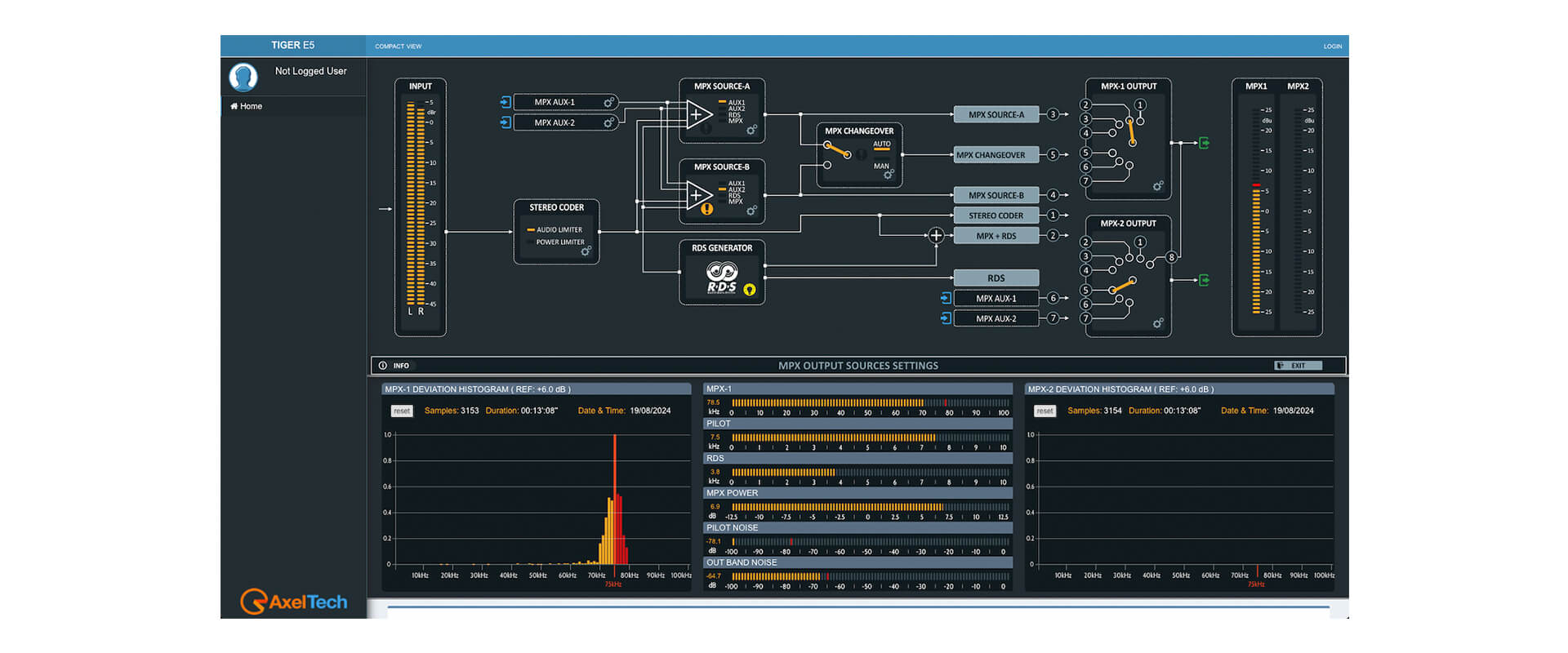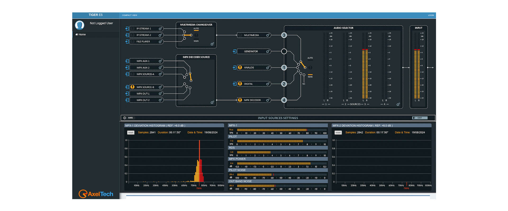 The MicroMPX lovers can now take advantage of all the additional options allowed by AxelTech Tiger E3/E5, like four channel changeover, backup SD card audio player, RDS post-processing, MPX, and RDS decoding for monitoring, and many more, which can satisfy any need at the transmitting site.