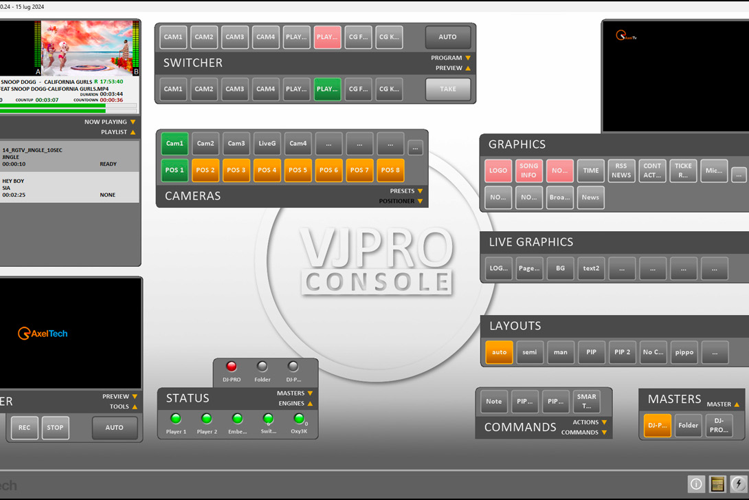 - AxelTech Radio Automation and VJ Pro are alreadyused by other RAI channels, while the OxygenRemoter embeds the same core of AxelTech’sclassic studio’s consoles