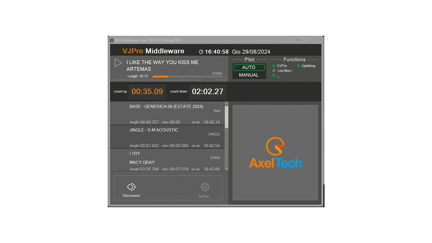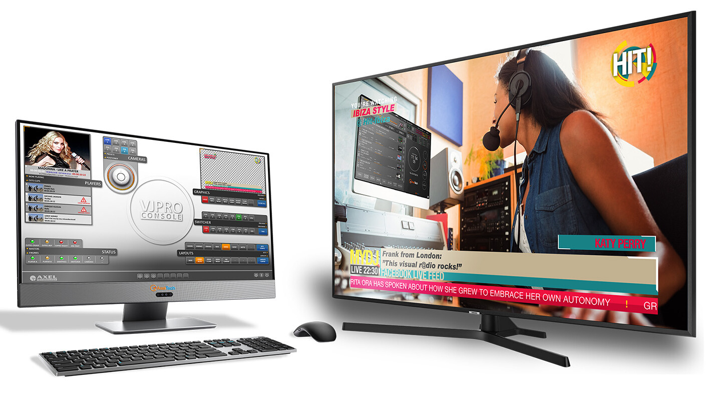 VJ Pro, the Visual Radio solution by AxelTech, has no impact on Studio Workflow, no need for additional technicians, and only quick training for the system setup. Live Radio programming and shows can be broadcast simultaneously on both Radio and TV without incurring the costs and efforts usually associated with traditional TV production. You don’t need TV expertise, the production cost is close to zero, and it involves a one-time minimal investment. Visual Radio runs with the same technical staff and talent used at the radio station. Radio keeps its workflow and equipment since VJ Pro can be connected to any Radio Automation system and Digital Mixing Console.