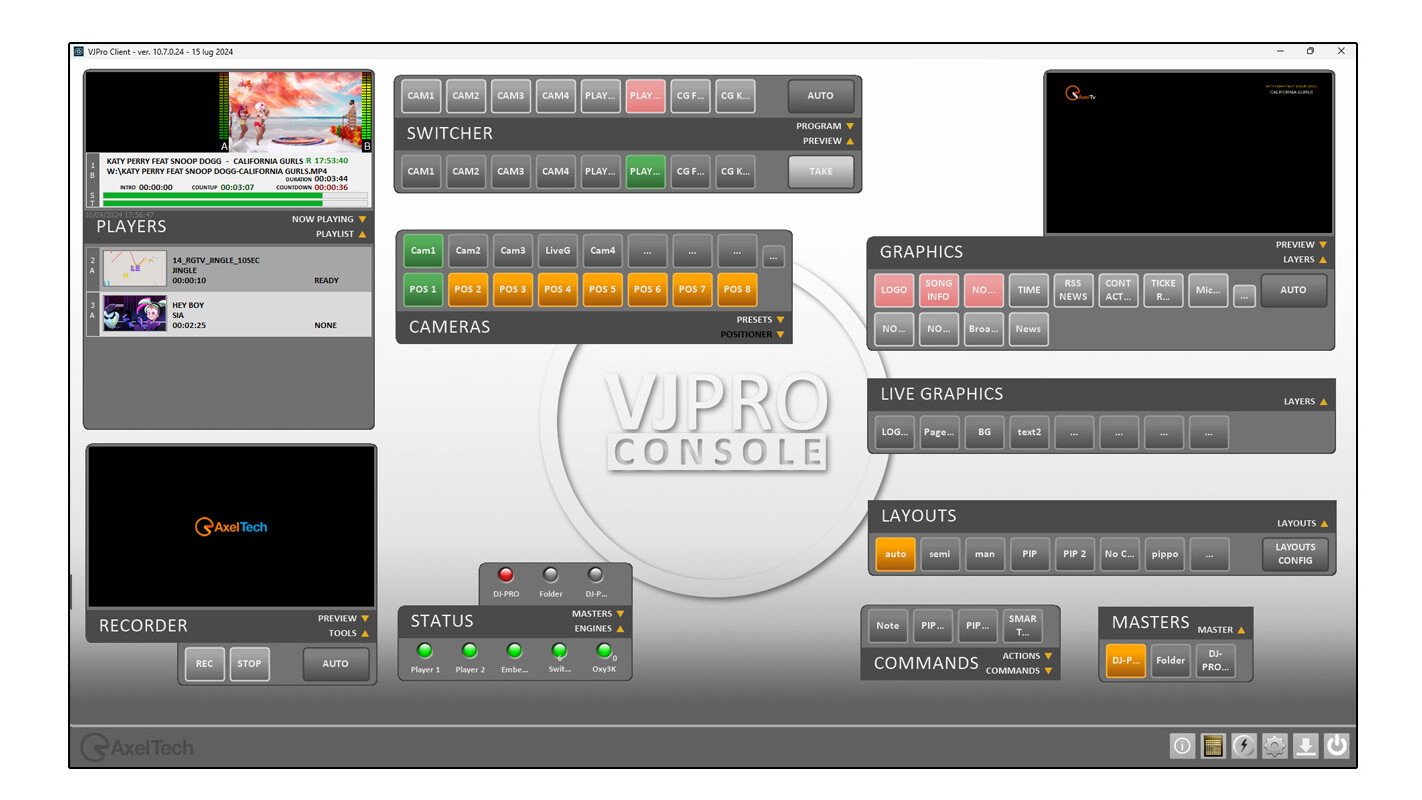 The VJ Pro Console is the GUI that allows to control part or all of the features through a few Widgets: