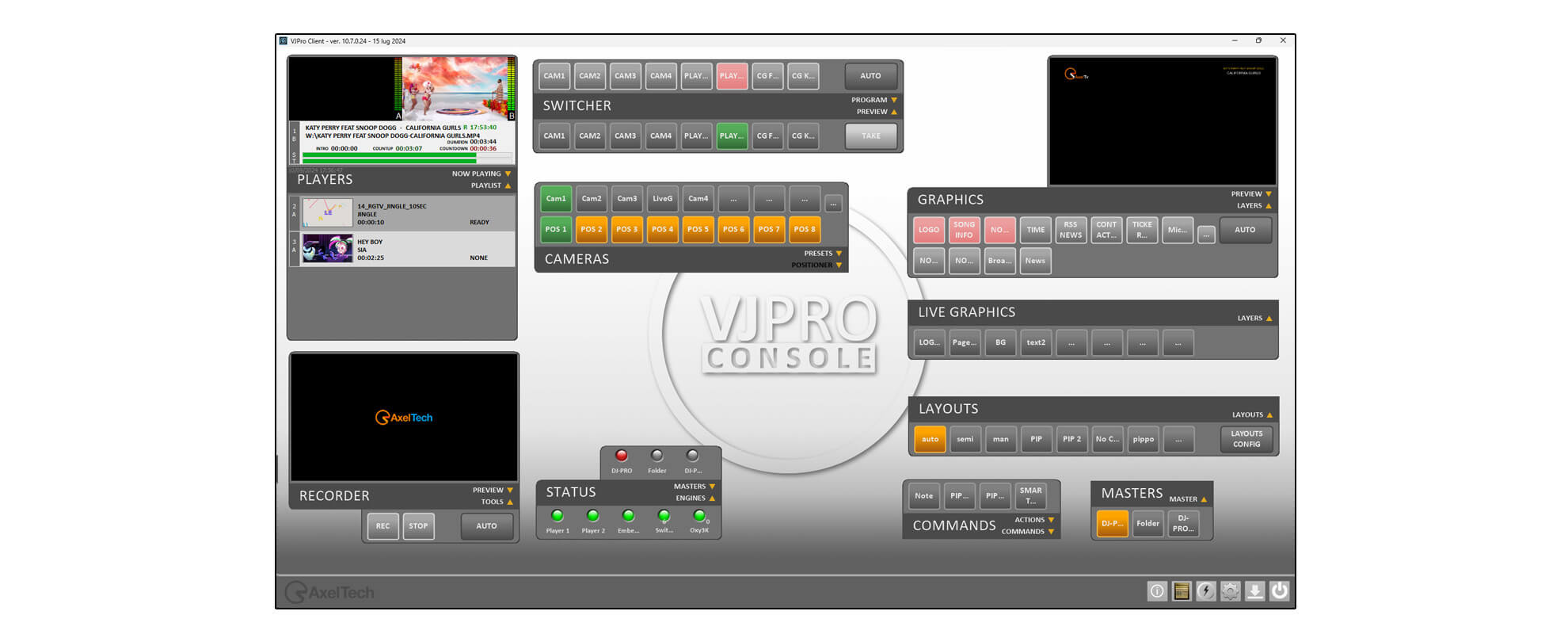 The VJ Pro Console is the GUI that allows to control part or all of the features through a few Widgets: