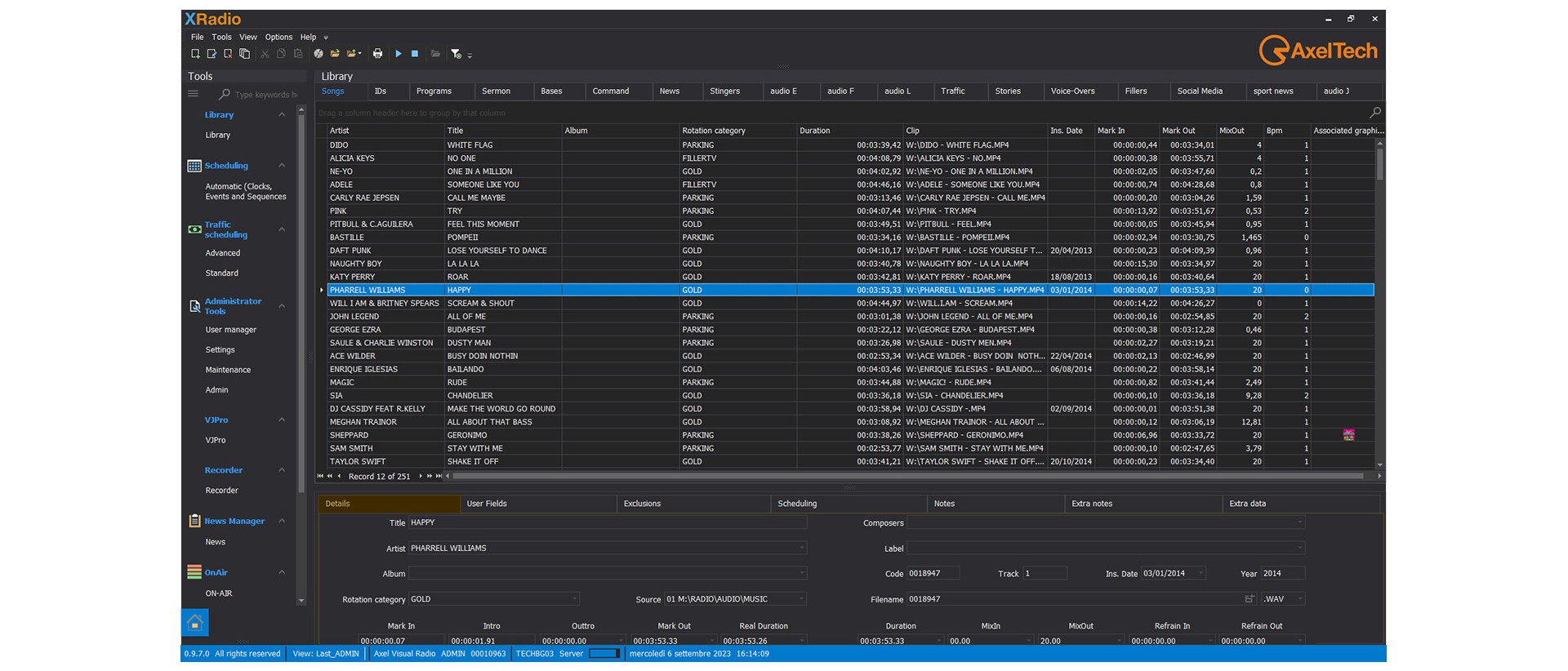A Radio’s Audio Collection is a leaving being and XRadio is the natural environment to assign a purpose to each single element. Each song and audio track can be edited and then assigned to the proper channel, every track plays a significant part in the Orchestral order of the elements of a scheduling.