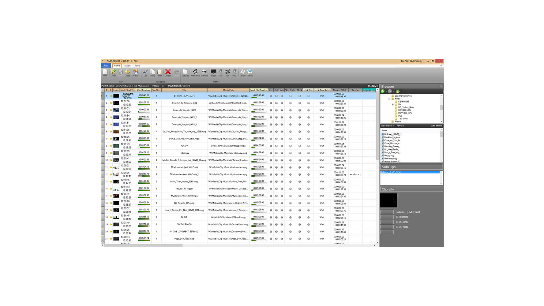 Dynamic Playlist: Real time playlist management without black frames nor freezes. Advanced Scheduler: Unlimited playlist length with automatic clip skipping and cutting when late.