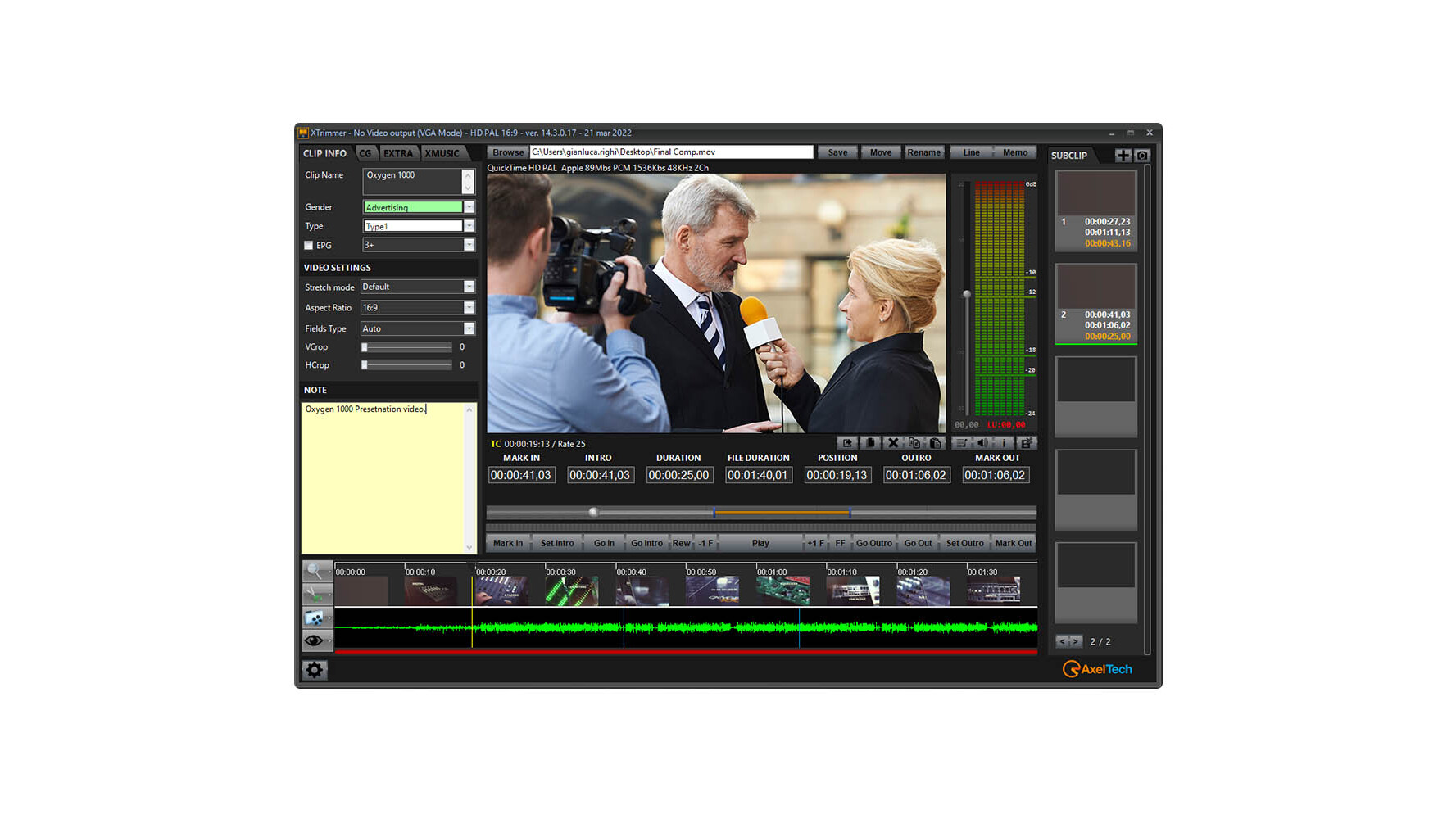 XTV plays out any kind of media in any resolution: DV, HDV, MPEG-2, MPEG-4, MPEG-1, H.264, QuickTime, MXF, XDCAM, PRORES, DNXHD, GXF, LXF, etc. XTV allows to play and mix any media format according to broadcaster’s production workflow and pros and cons of each AV codec.