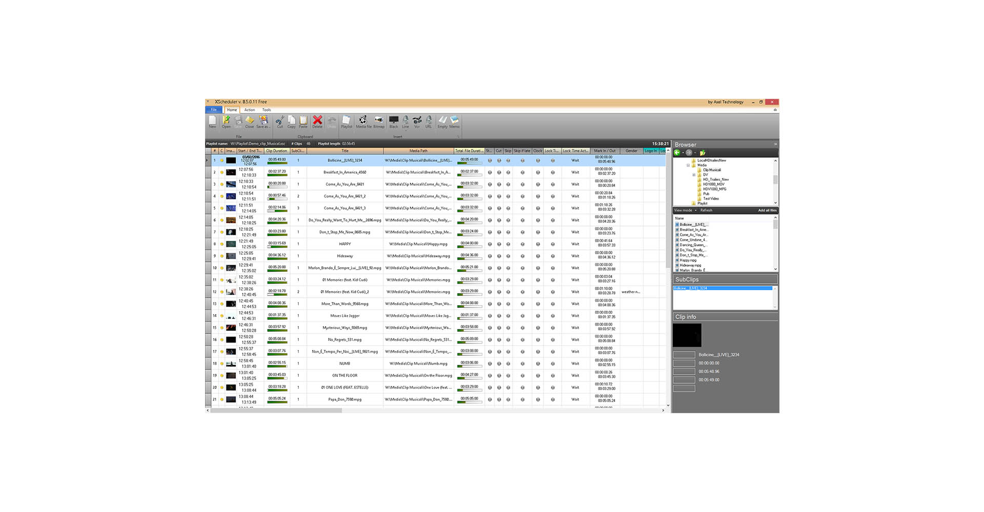 Dynamic Playlist: Real time playlist management without black frames nor freezes. Advanced Scheduler: Unlimited playlist length with automatic clip skipping and cutting when late.